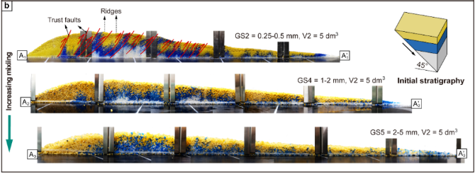不同粒径颗粒流堆积体表面地貌形态及内部变形特征