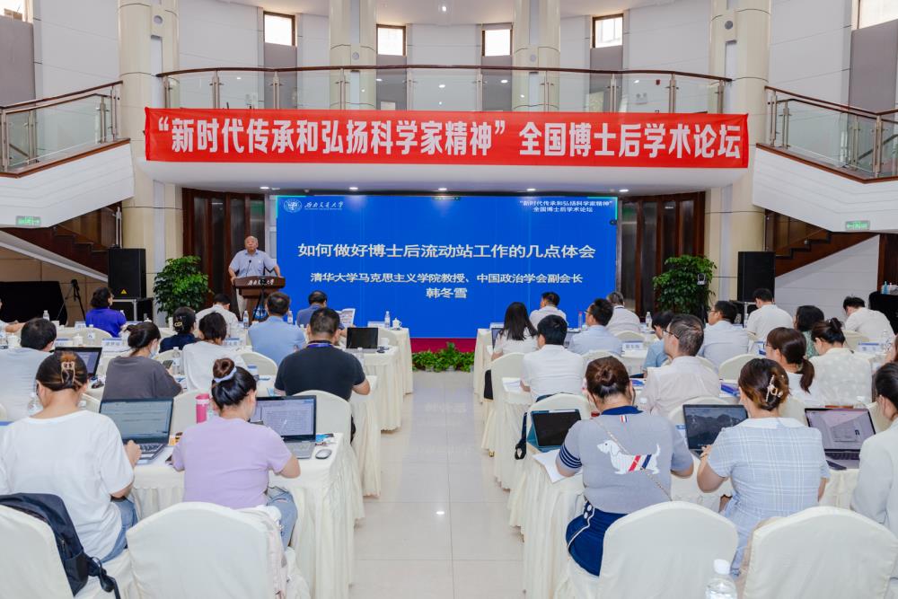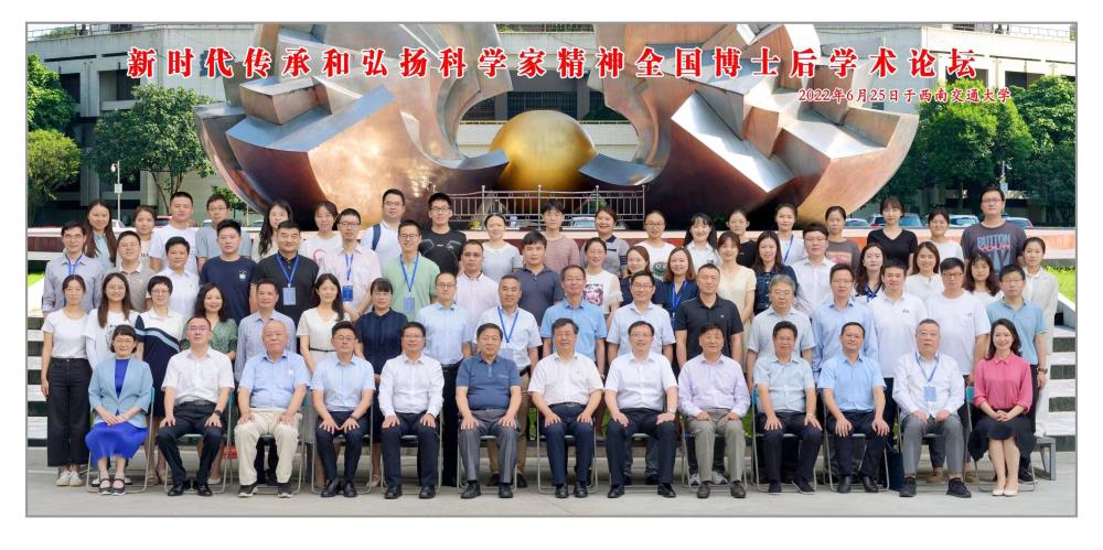为学习贯彻习近平总书记关于科学家精神重要论述推动新时代传承和弘扬科学家精神的学理研究,以“新时代传承和弘扬科学家精神”为主题的全国博士后学术论坛于6月25日在我校九里校区学术交流中心成功举行。出席本次论坛的领导和专家有中国人才研究会会长、国家人力资源和社会保障部原副部长何宪,国家人力资源和社会保障部专业技术人员管理司二级巡视员薛万里,四川省人力资源和社会保障厅二级巡视员黄学宁,西南交通大学党委书记王顺洪,中共中央组织部人才局原巡视员兼副局长李志刚,重庆市人力资源和社会保障局副局长谢辛,西南交通大学党委常委、副校长刘长军,西南交通大学马克思主义学院院长邱海平,中国政治学会副会长、清华大学马克思主义学院教授韩冬雪,中国科学院政策研究与评价中心主任李晓轩,中国(南京)人才发展研究中心常务副主任、河海大学教授赵永乐,中国人事科学研究院原院长吴江,中国人事科学研究院研究员袁娟,中国人才研究会人才学委员会副秘书长、常务理事汪怿,以及来自全国20多个高校和科研院所的专家学者。本次学术论坛由开幕式、主论坛、分论坛三部分组成,以“线上+线下”的方式开展,开幕式由西南交通大学党委常委、副校长姚发明主持。