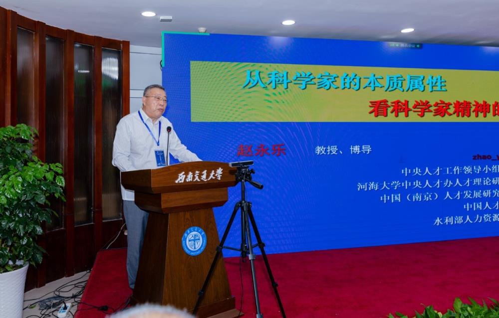 赵永乐做了题为“从科学家的本质属性看科学家精神的弘扬”主题报告。他辨析了科学家的本质属性,可能在看守科学殿堂的“天使”与“恶魔”间转换,需要坚持和弘扬科学家精神。认为科学家具有自然属性(科学属性)、社会属性、世界观属性,指出弘扬科学家精神要在国家层面弘扬爱国、创新、引领、聚英,在社会层面弘扬平等、竞争、宽容、竞争,在科学家层面推动奉献、协同、育人。