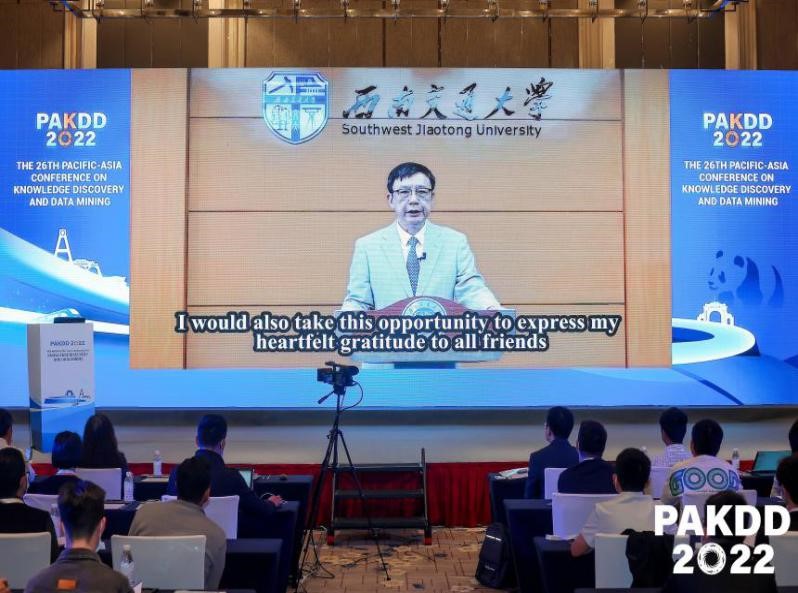 5月16-19日,由西南交通大学计算机与人工智能学院、唐山研究院、网络教育学院承办、四川省人工智能学会等协办的第26届亚太知识发现和数据挖掘会议(The 26th Pacific-Asia Conference on Knowledge Discovery and Data Mining, PAKDD2022)作为学校126周年校庆系列活动之一在成都圆满召开。西南交通大学校长杨丹教授,加拿大国家科学院/工程院院士、西蒙-弗雷泽大学Jian Pei教授,德国科学院院士、马克斯-普朗克智能系统研究所Bernhard Schölkopf教授,PAKDD指导委员会主席、台湾新竹交通大学Vincent S. Tseng教授,澳大利亚悉尼科技大学Longbing Cao教授,京东集团副总裁、京东数字科技首席数据科学家郑宇教授,中国科技大学大数据学院执行院长陈恩红教授,中国人民大学信息学院院长文继荣教授,西南交通大学计算机与人工智能学院党委书记李天瑞教授,南京大学俞扬教授等嘉宾出席了本次会议。受全球新冠疫情影响,本届会议采用线上线下同时举办的方式,实现全球参会人员实时联动。开幕式由大会程序委员会共同主席、西南交通大学计算机与人工智能学院党委书记李天瑞教授主持。