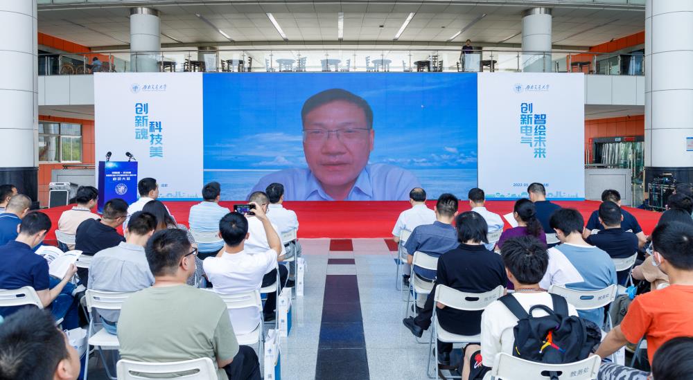 随后,西南交通大学电气工程学院院长陈维荣介绍学院学生科创培养体系。电气工程学院是西南交通大学历史最悠久的学院之一,建院七十余载,创造了电气化铁路发展史上的多个“中国第一”与“世界第一”。学院一直高度重视学生实践创新能力培养与提升,整合各类优势资源,积极搭建多维度平台,面向国家重大工程需求,立足“三个依托”,切实做好学生科技创新能力培养工作。近年来,学院科创氛围浓厚,在多项科创竞赛中获得国家级奖励。下一步,学院将继续围绕“创新电气·智绘未来”科技创新文化节,以成体系、有实效的学科竞赛阶梯培养计划,深化本科生创新意识、提升科创能力,以高质量人才培养支撑学校“双一流”建设。